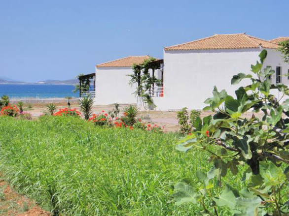 Τα bungalows Ψαρομμάτη απέχουν λίγα μέτρα από την αμμώδη παραλία Νερατζιώνας.
