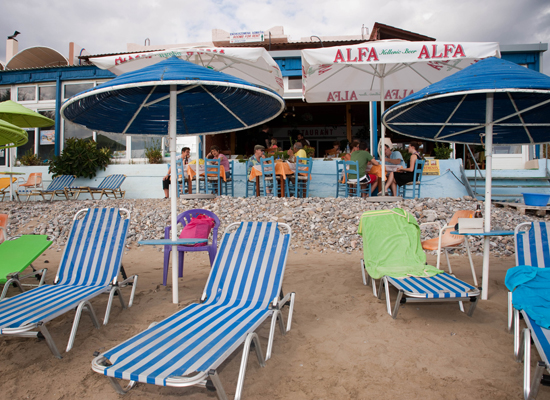 Βρισκόμαστε στο κέντρο του Μακρύ Γιαλού πουπεριβάλλεται από καφέ - μπαρ και ταβέρνες.
